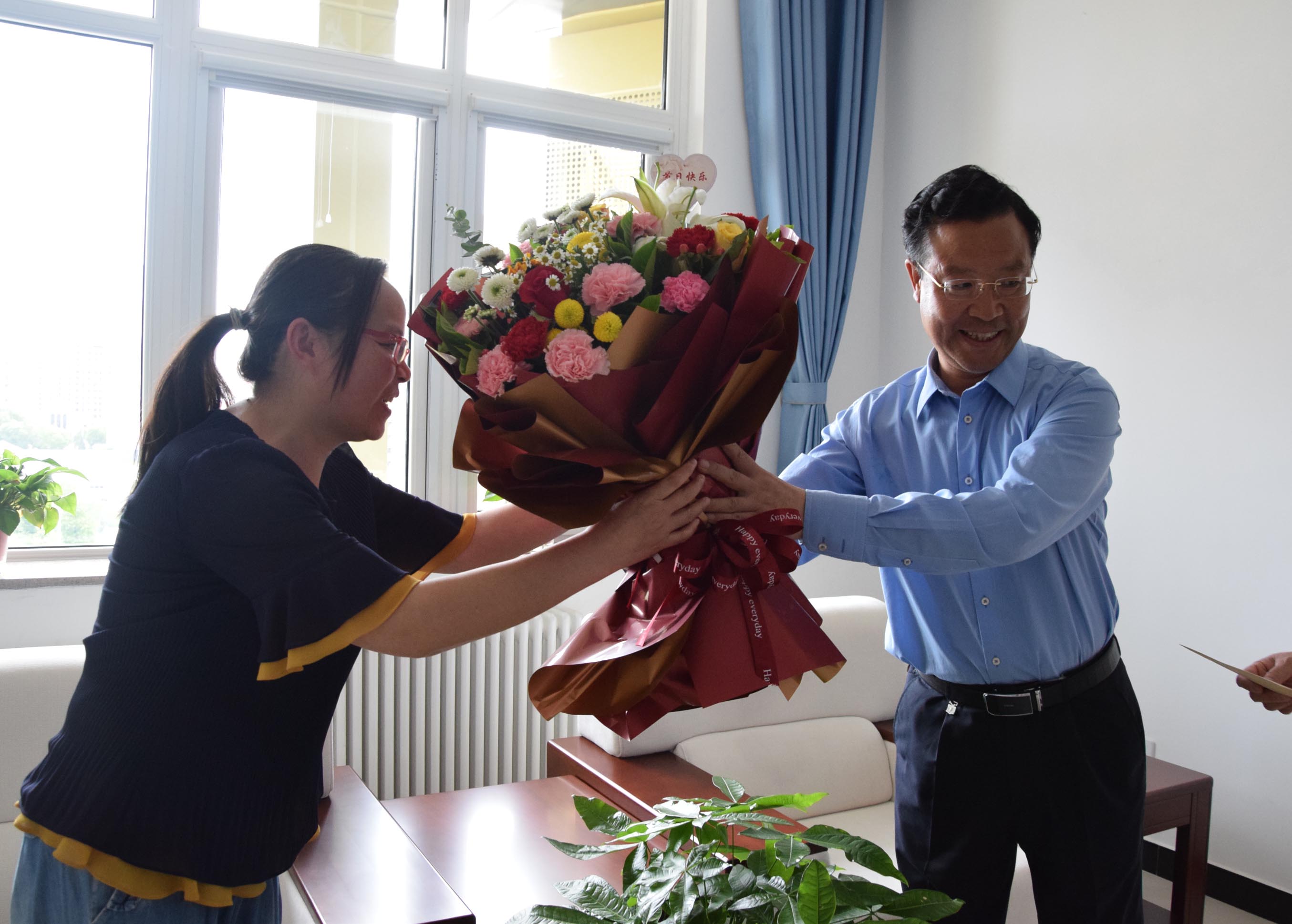 走访慰问过程中,牛启寿与郭延清老师亲切交流,他代表市委、市政府向我校科技工作者致以节日的问候。牛启寿指出,市委市政府高度重视科技创新人才的培养工作,希望我校的科技工作者进一步增强责任感、使命感,立足岗位、积极进取、扎实工作,争做新时代科技创新的排头兵,为平凉市的发展贡献更多智慧和力量。