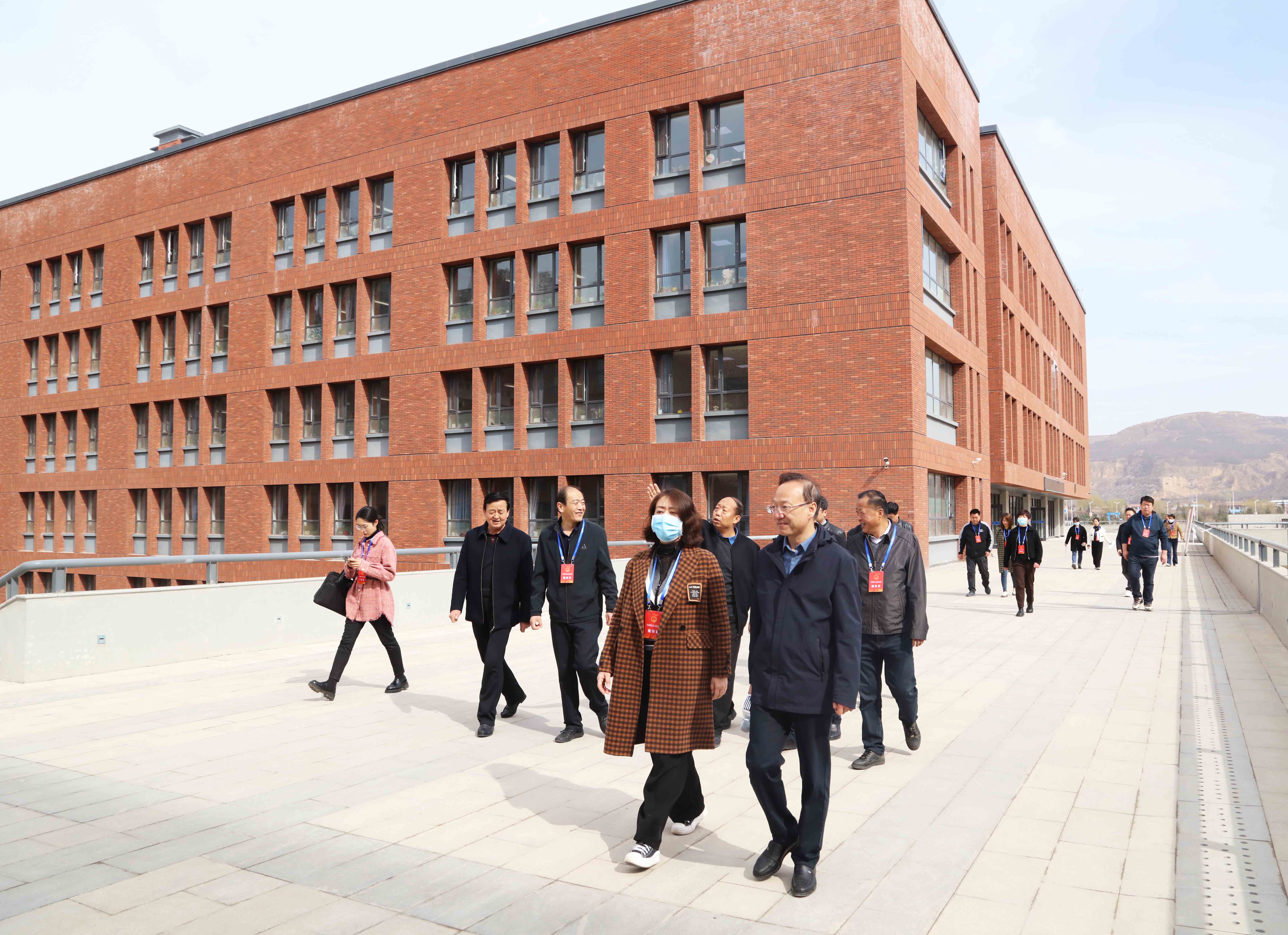 学校领导陪同人大代表们走进校园参观了教学楼、学生公寓、体育馆、食堂和图书馆等功能区域。