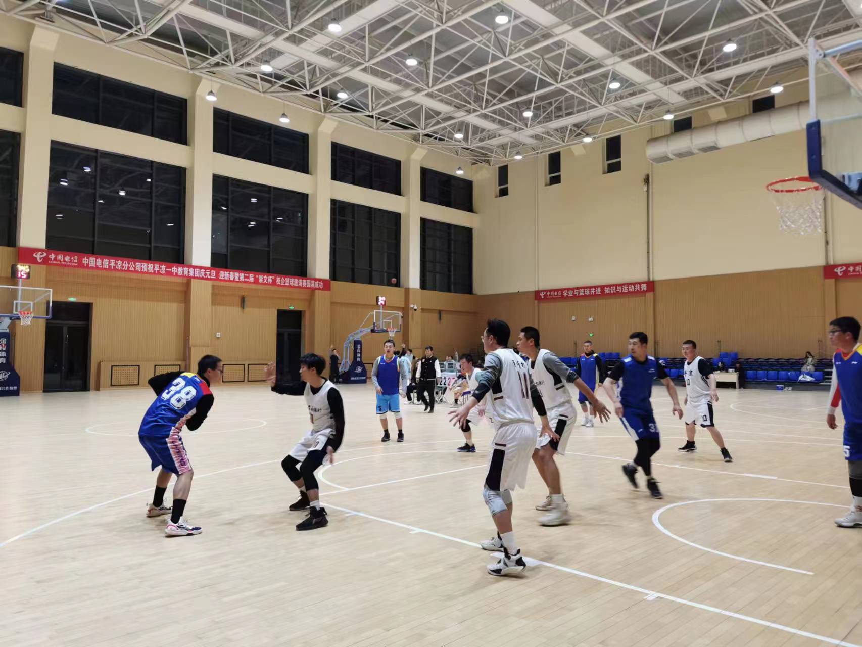 为丰富职工文化生活,增进平凉一中与企事业单位、兄弟学校之间的互相了解、沟通学习,更好地为各单位运动爱好者们强健体魄、展现风采提供舞台,2023年 12月25日—2024年1月2日,由平凉一中教育集团总校主办、中国电信平凉分公司协办,平凉一中教育集团第二届“崇文杯” 校企篮球邀请赛在平凉一中风雨操场(篮球馆)火热进行,来自平凉一中教育集团、中国电信平凉分公司、金润集团、平凉四中、平凉城投集团、平凉农商银行的六支篮球代表队参与比赛。