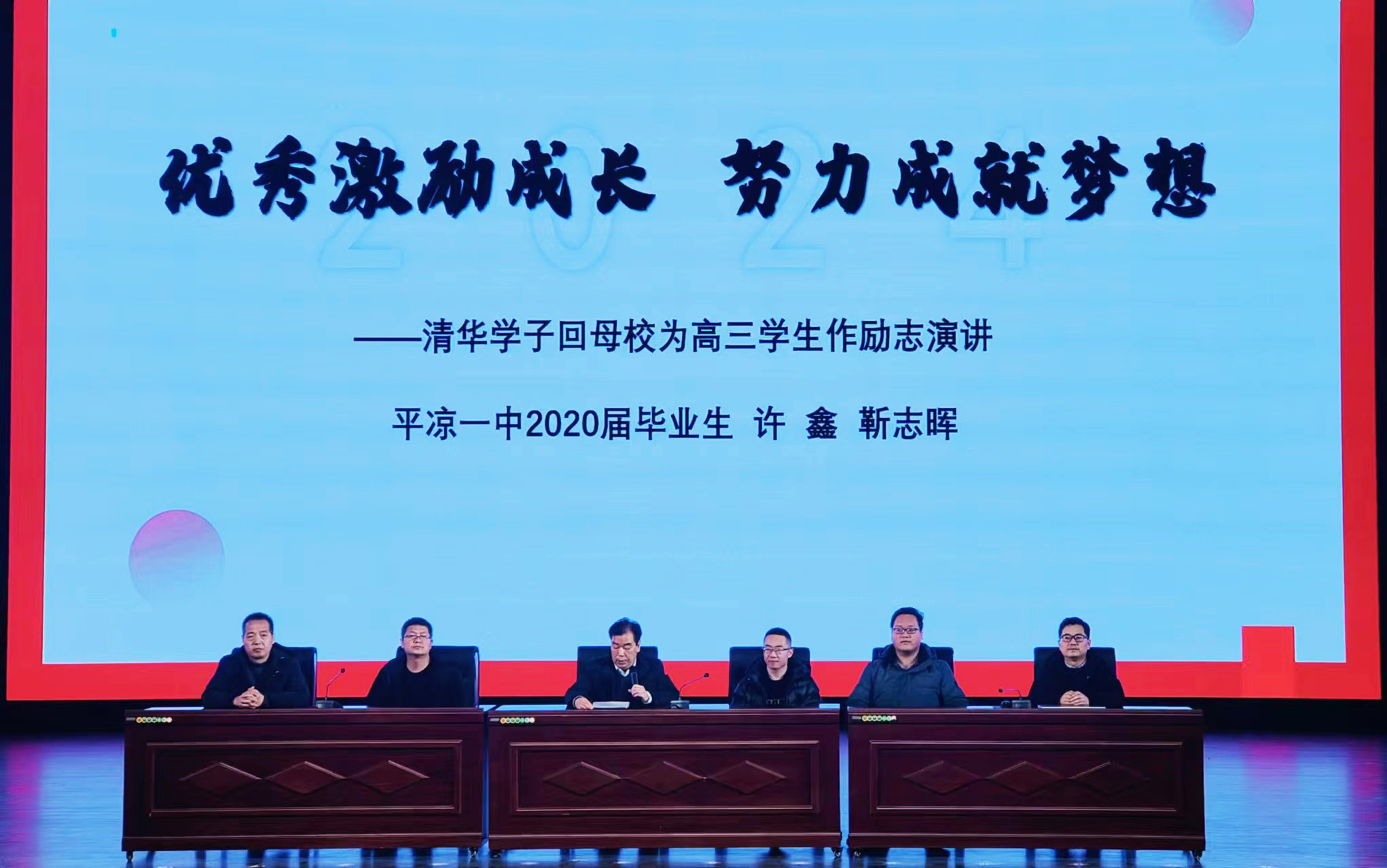 饮水思源,桑梓情深,归雁旋翅,以报春风。为充分发挥优秀毕业生的榜样引领作用,增强高三学生学习内驱力,激发他们备战二轮复习、决胜2024高考的热情和勇气,2月21日下午,平凉一中高三年级举办了“优秀激励成长 努力成就梦想”励志分享活动,来自清华大学的优秀学子靳志晖、许鑫重返母校,与学弟学妹们进行学习经验交流,传播青春能量,点燃奋斗激情。活动由学校副校长刘昌吉主持,全体高三学生全程参与。