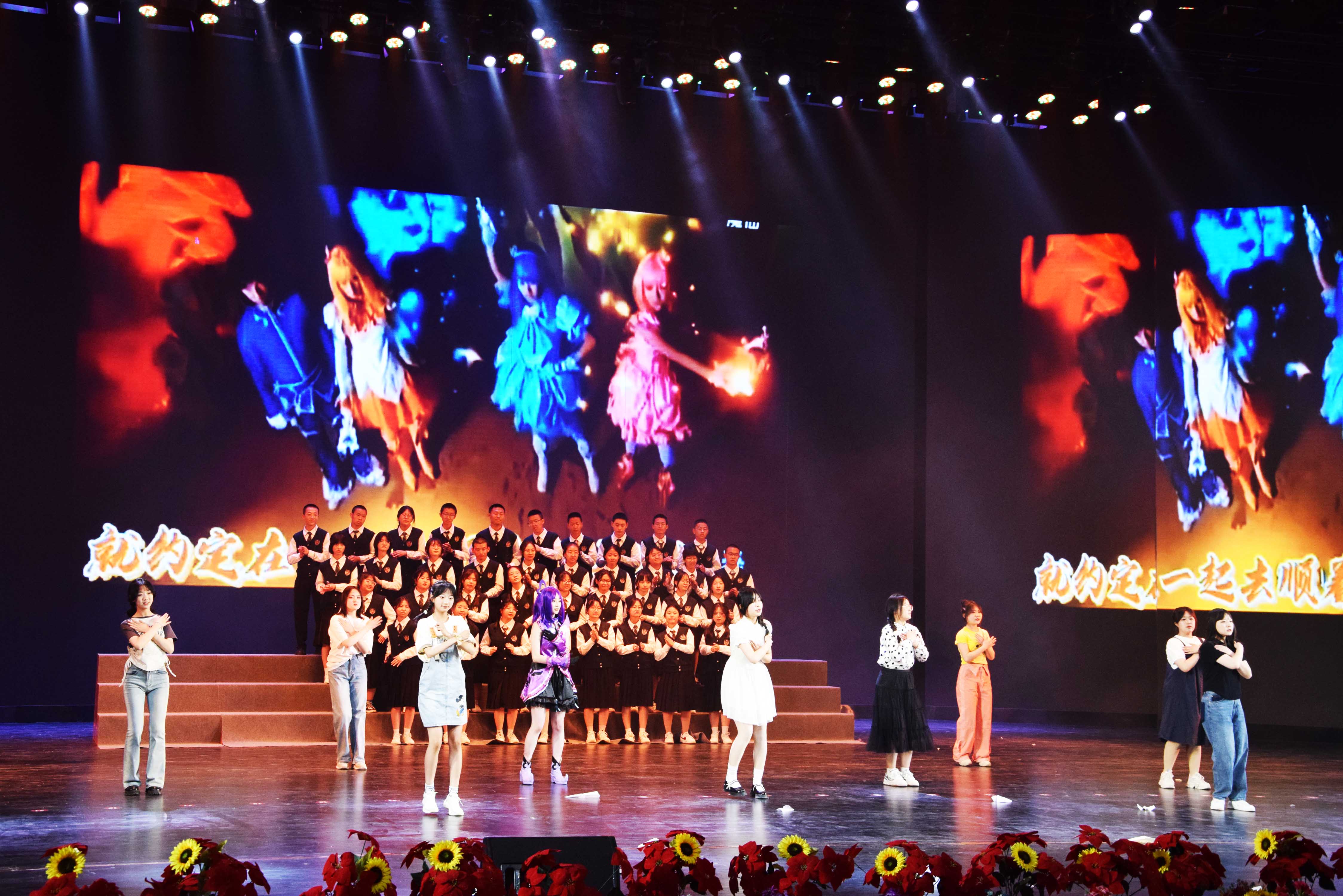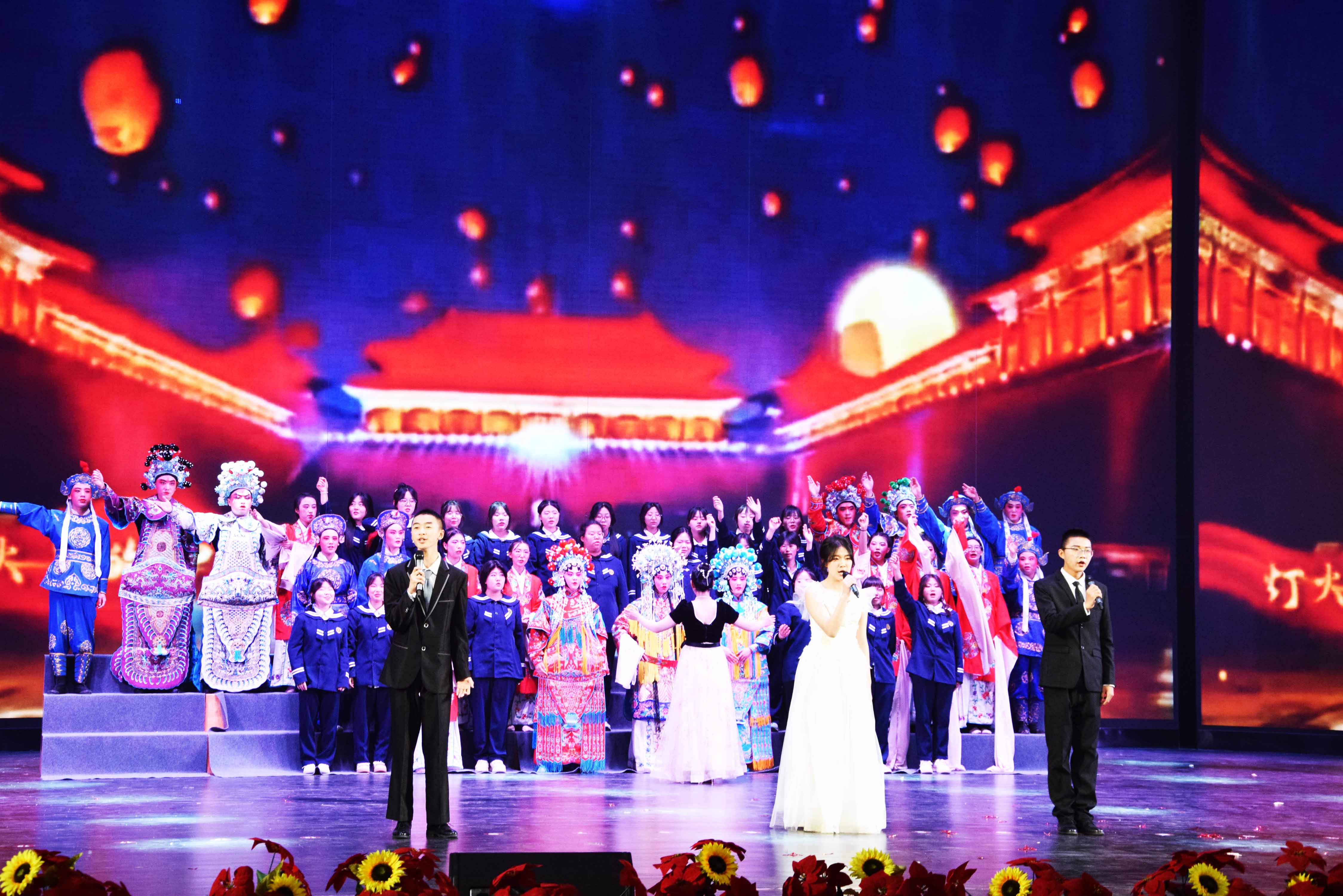 舞台剧《满江红》如同一阵历史的回声,唤醒了英雄的气概,展现了青春少年的壮志豪情。舞台上的点点星光,既是万家灯火的温馨,也代表了人民的朴实愿望。穿越千年的风声,最终化作了同学们深情演唱的《灯火里的中国》。当太阳初升,少年们沐浴在温暖的阳光下,演绎着充满欢笑与泪水的《风华正茂恰少年》,唱响了筑梦路上的《最美的太阳》。在这个宽广的舞台上,同学们尽情展现自己的才华和风采,载歌载舞中欢声笑语此起彼伏,掌声雷动。晚会在一片欢乐祥和的氛围中圆满落幕。