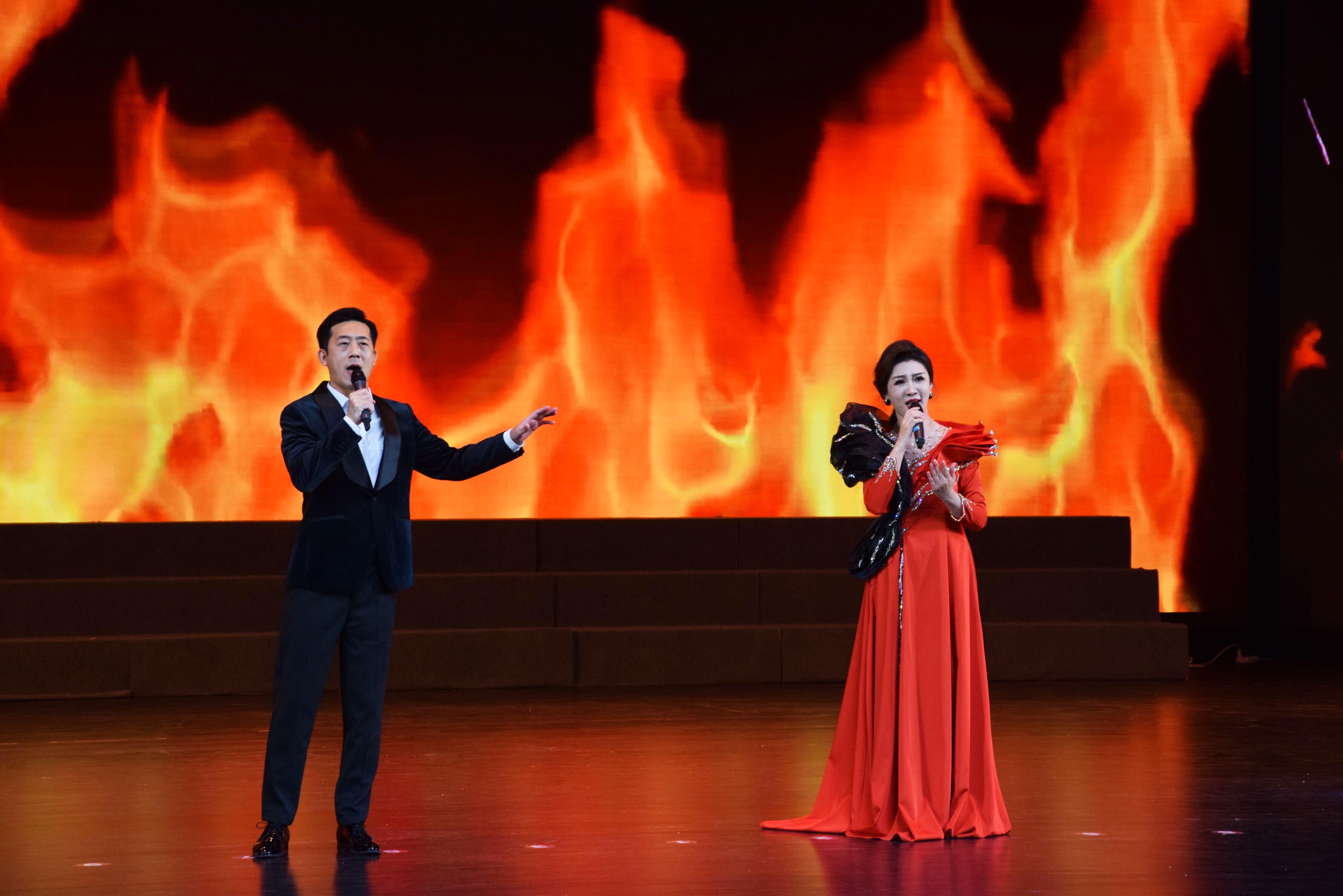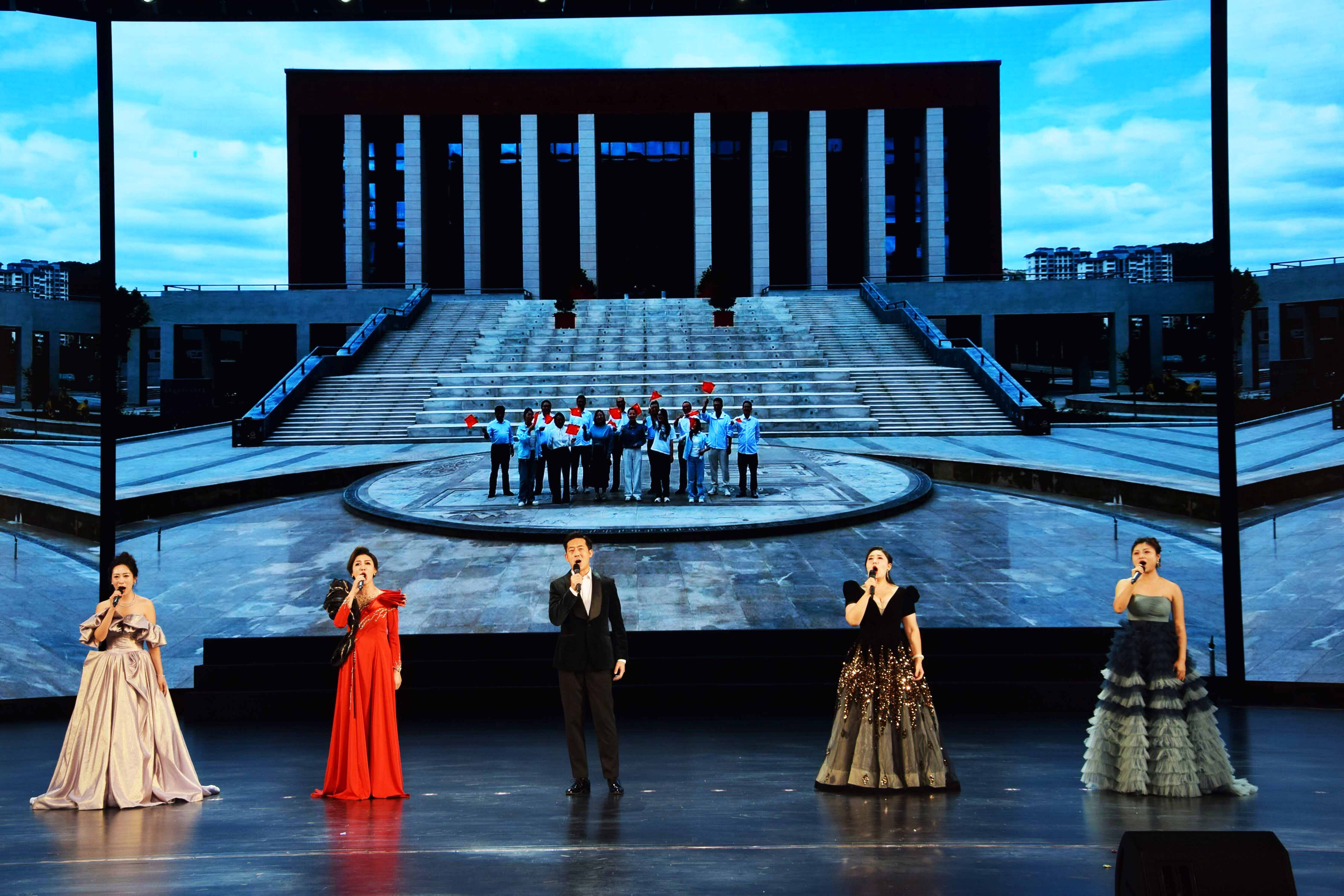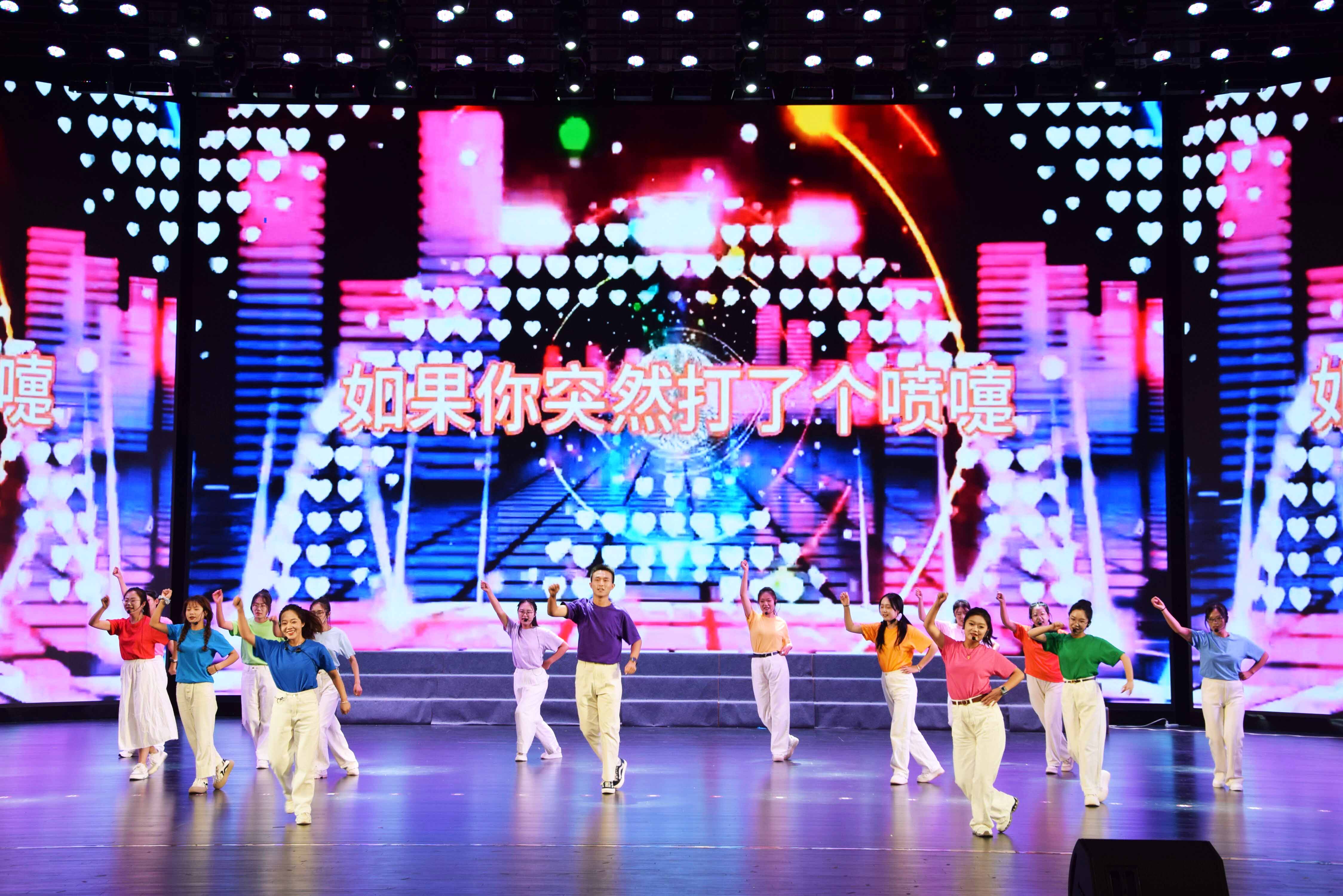 会后,师生们一同观赏学校准备的文艺演出,并在舞台合影留念!
